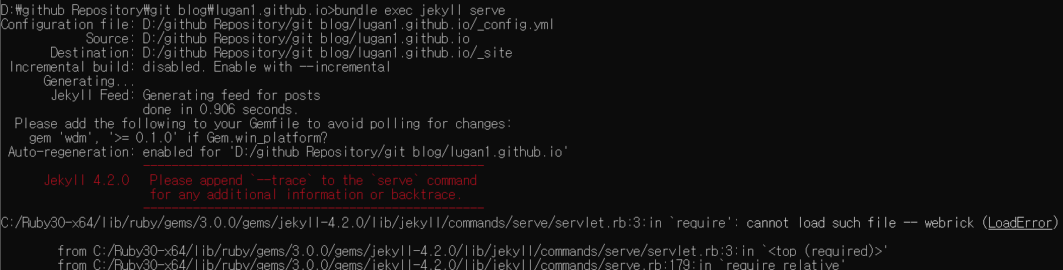 cannot load such file webrick 에러 해결방법