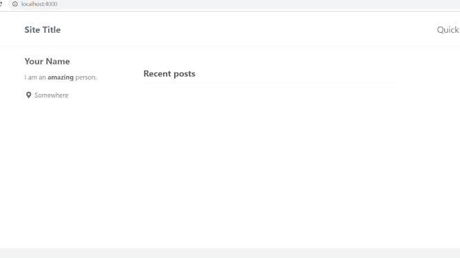 인터넷 주소창에 localhost:4000 치고 이동하면 블로그 화면 나오는것을 확인가능