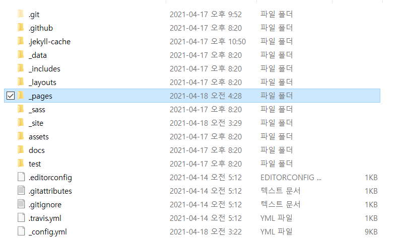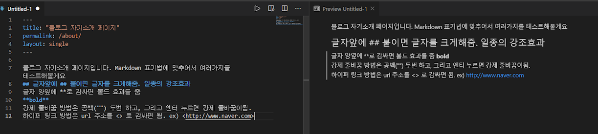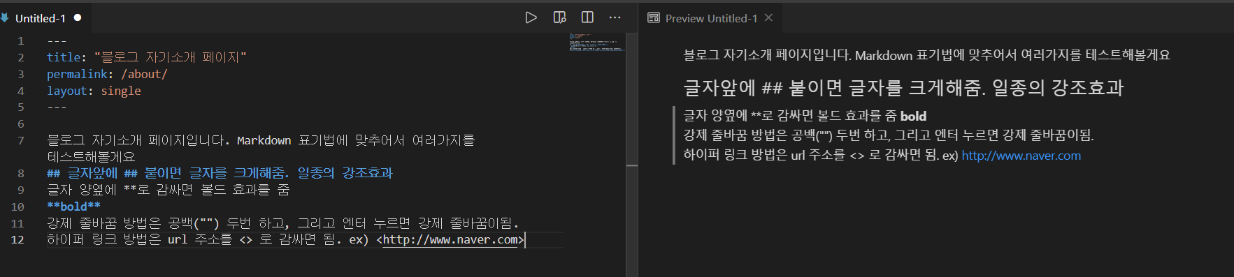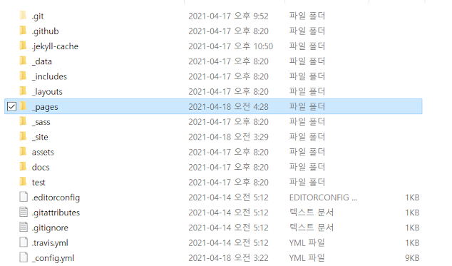 저장할때는 이름을 about.md 으로 하고 _pages 폴더에 저장한다.