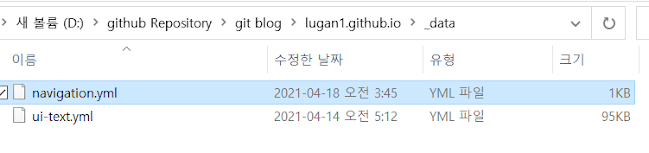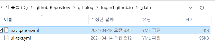 경로의 navigation.yml 파일을 텍스트 에디터로 열어서 수정.
