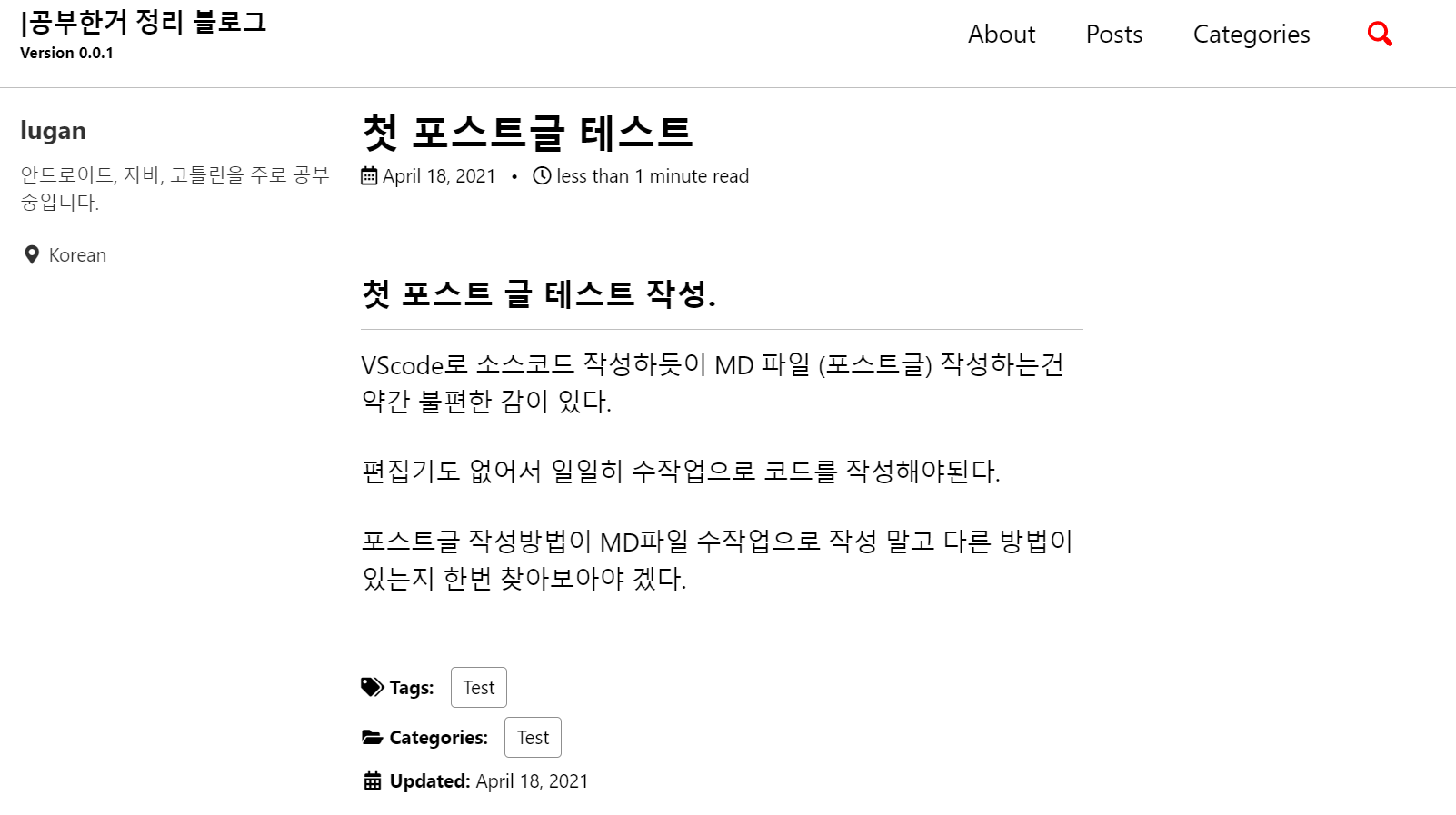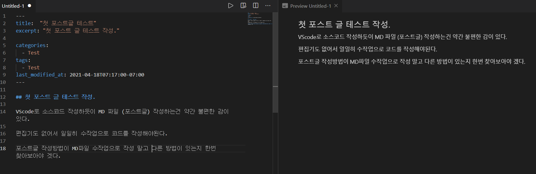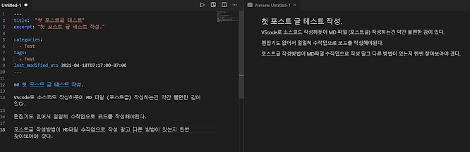 정상적으로 편집기 기능까지 갖춘걸로 post md파일을 작성할수 있다.