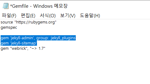 Repository 폴더 내의 gemfile 수정하면 됨. 아래항목 추가함